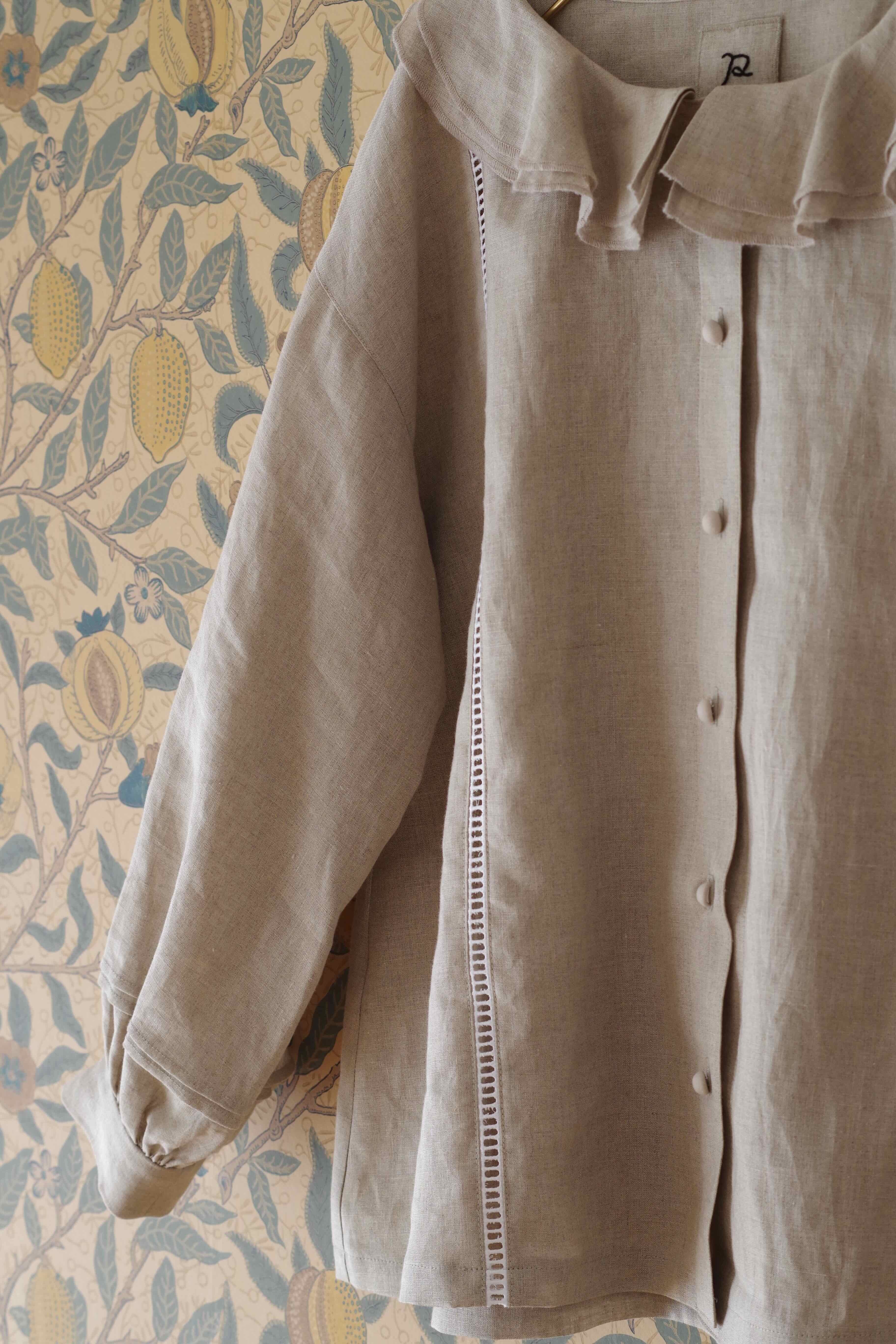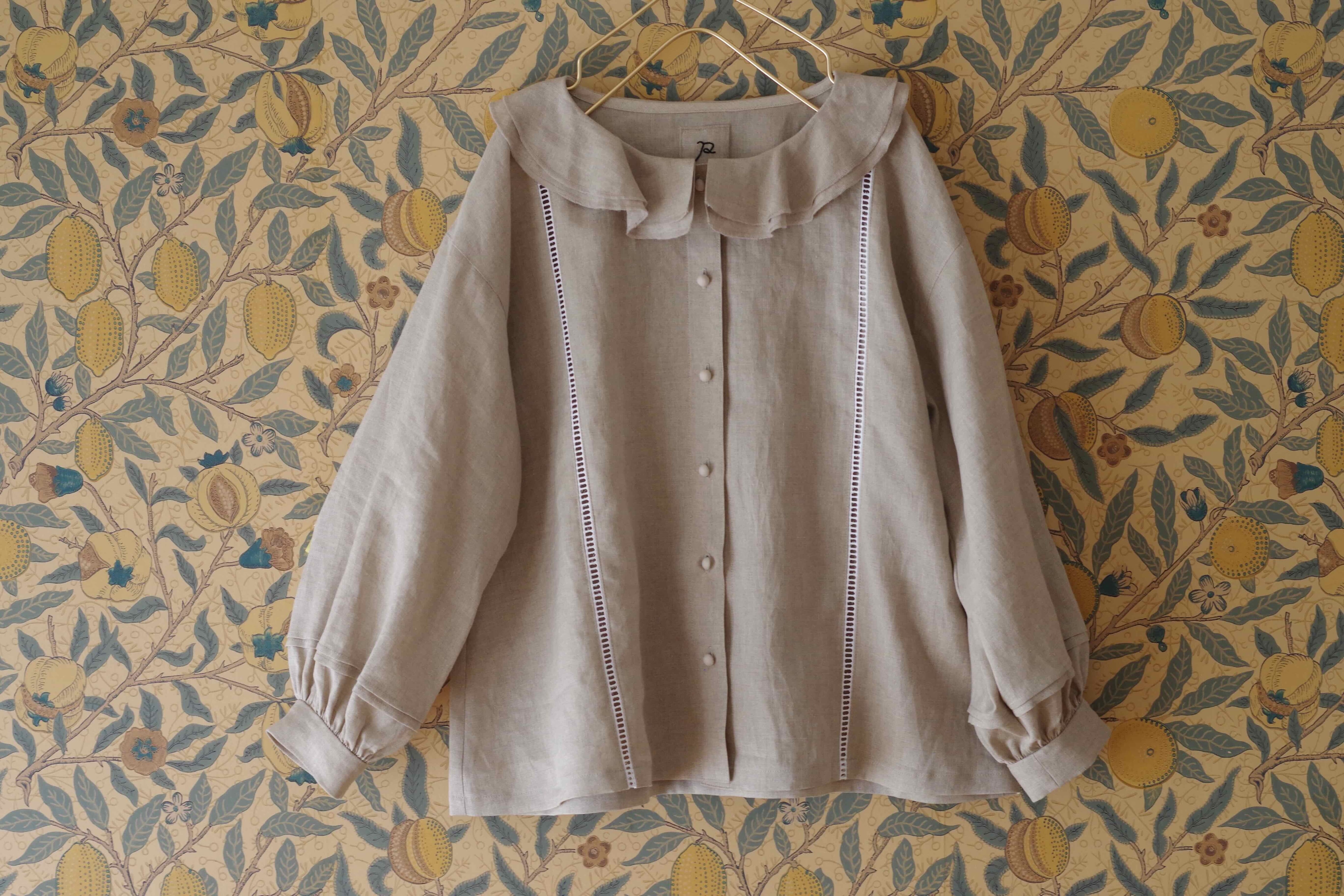 【polite】2重ラッフルドカラーブラウス(グレー)
